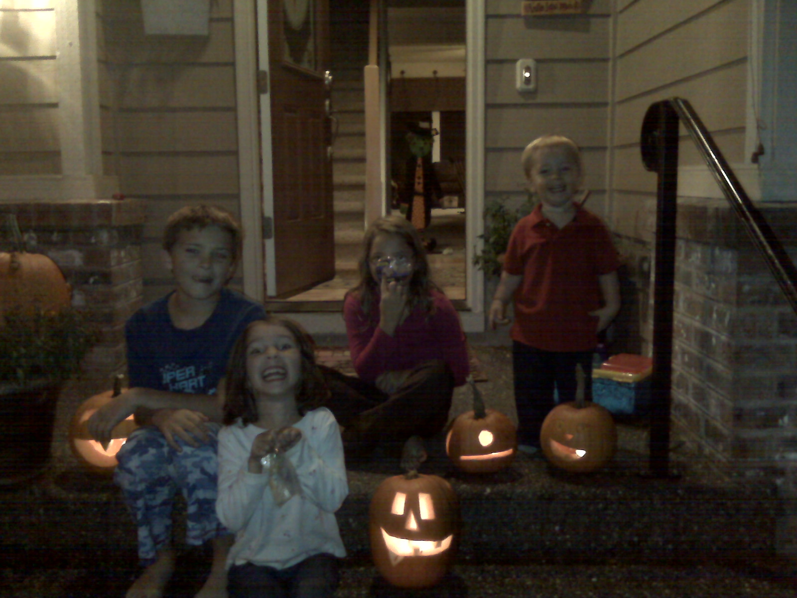 You can't see it well, but we got these really COOL looking pumpkins from Joe's place but they were impossible to carve, even with Dave's big hunting knife! So Savannah carved her pumpkin from grandma after all and Dave carved Isabella's grandma pumpkin for Ben since she got another at BI-Zi Farms.